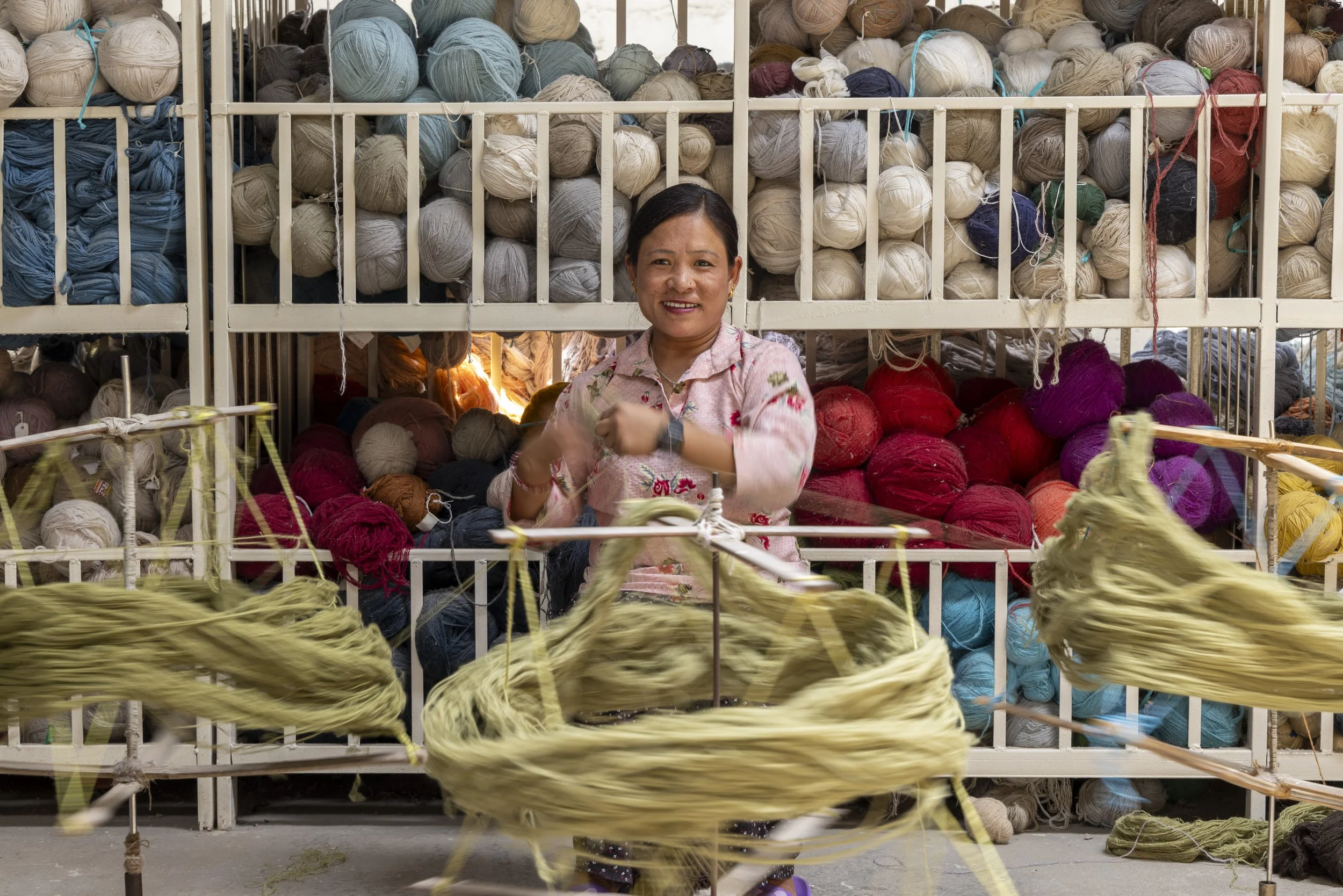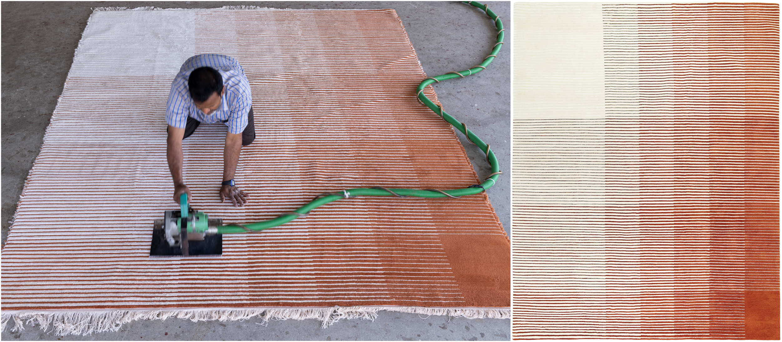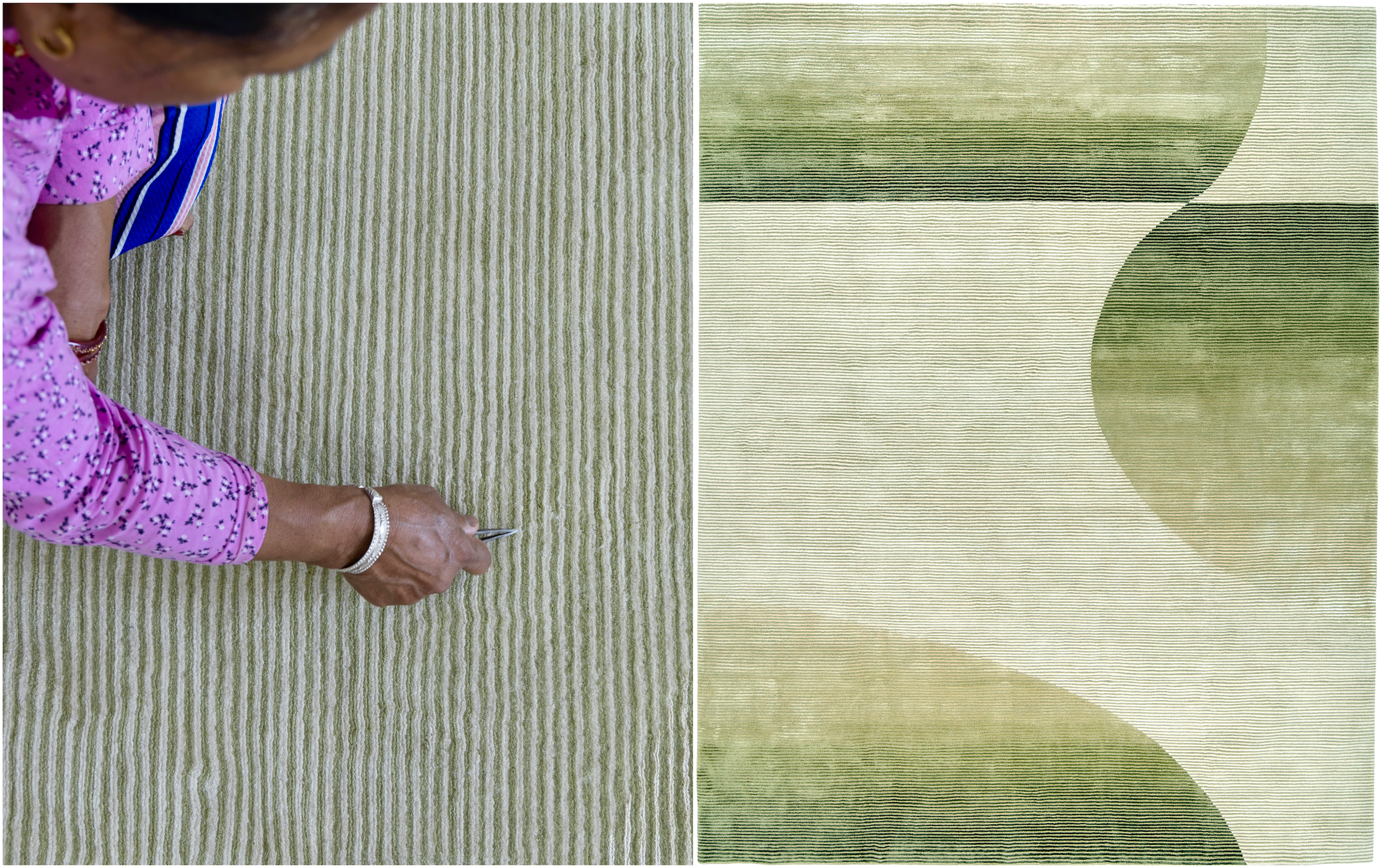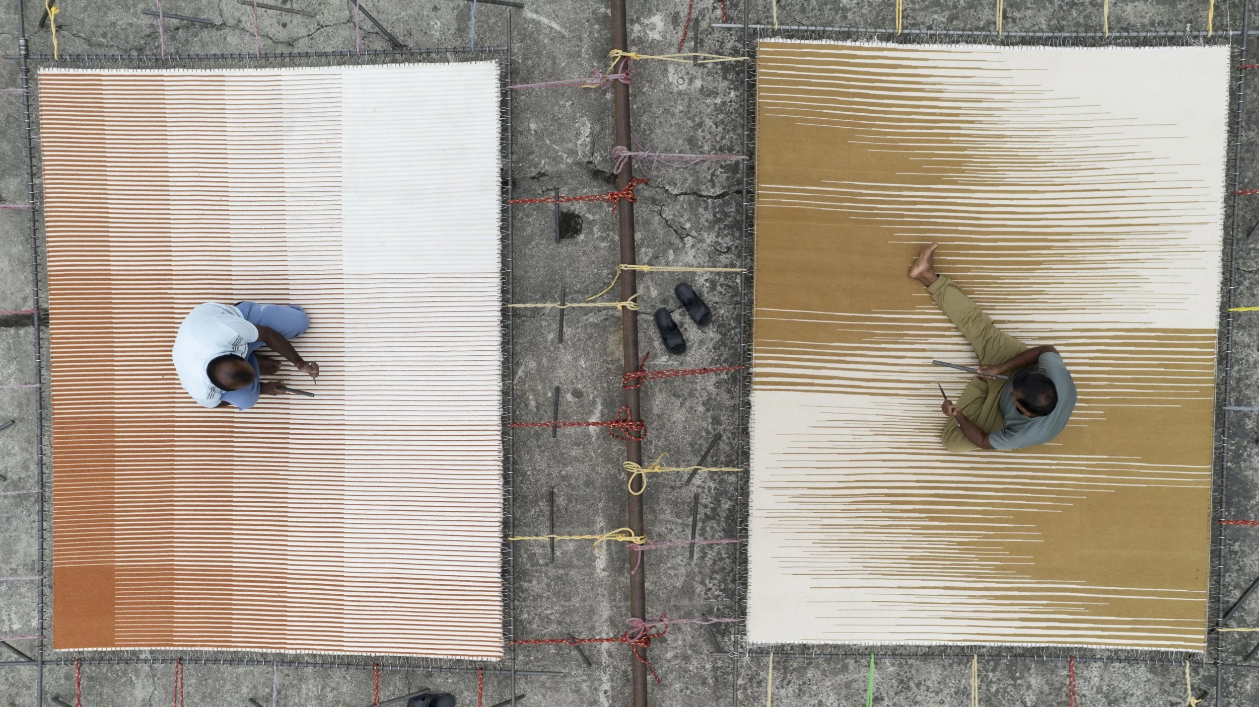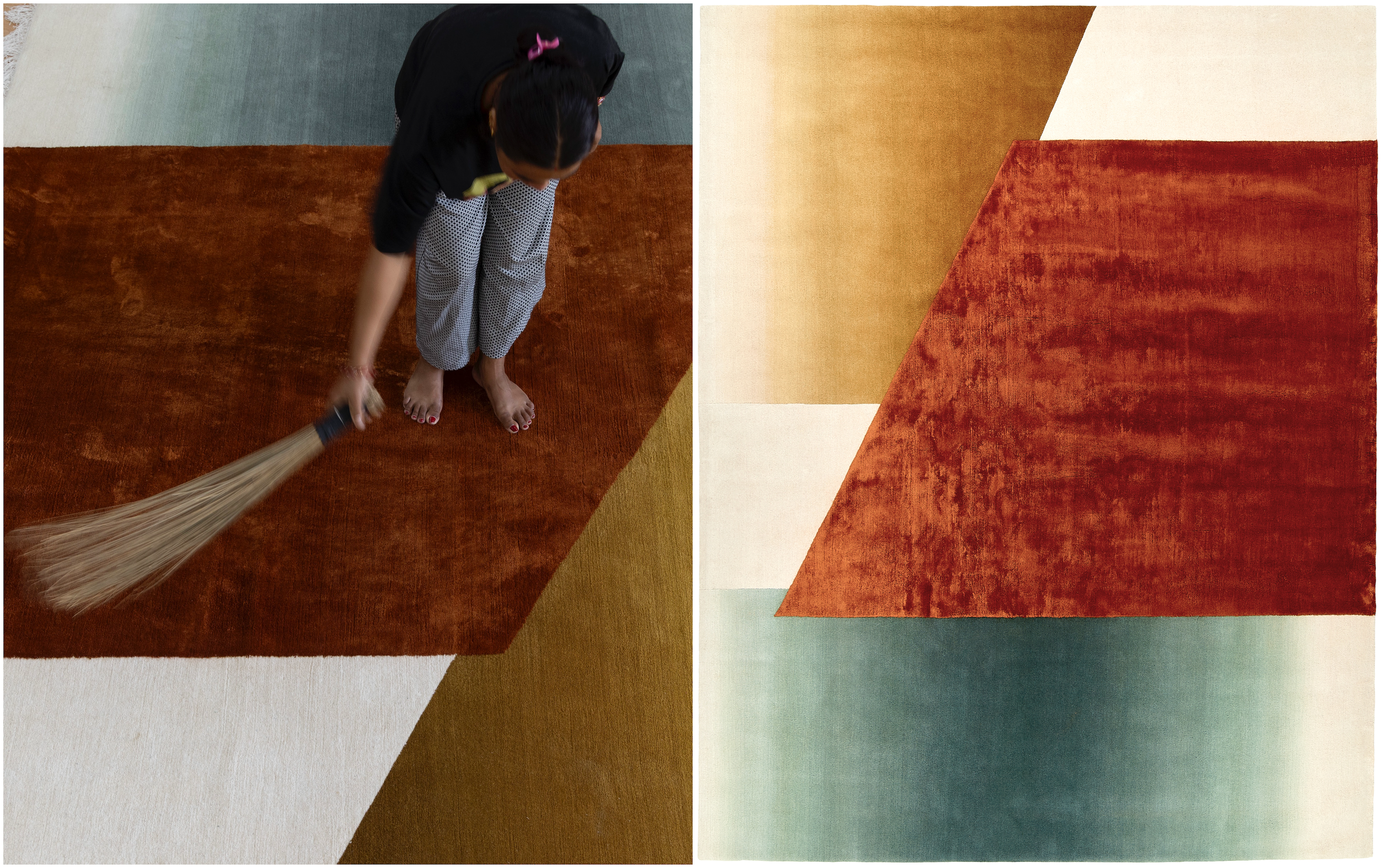 Cette collection est aussi l'histoire des artisans qui ont donné vie aux modèles. À travers l'objectif du photojournaliste népalais Narendra Shrestha, la fabrication de la collection se dévoile à travers des fils imprégnés de couleurs, des métiers à tisser tendus avec précision et chaque nœud fait à la main. Les tapis sont lavés, tondus et finis en surfaces avec une touche humaine. L'histoire de la fabrication est aussi l'histoire des matériaux, où la durabilité devient une autre couche de texture dans la collection.