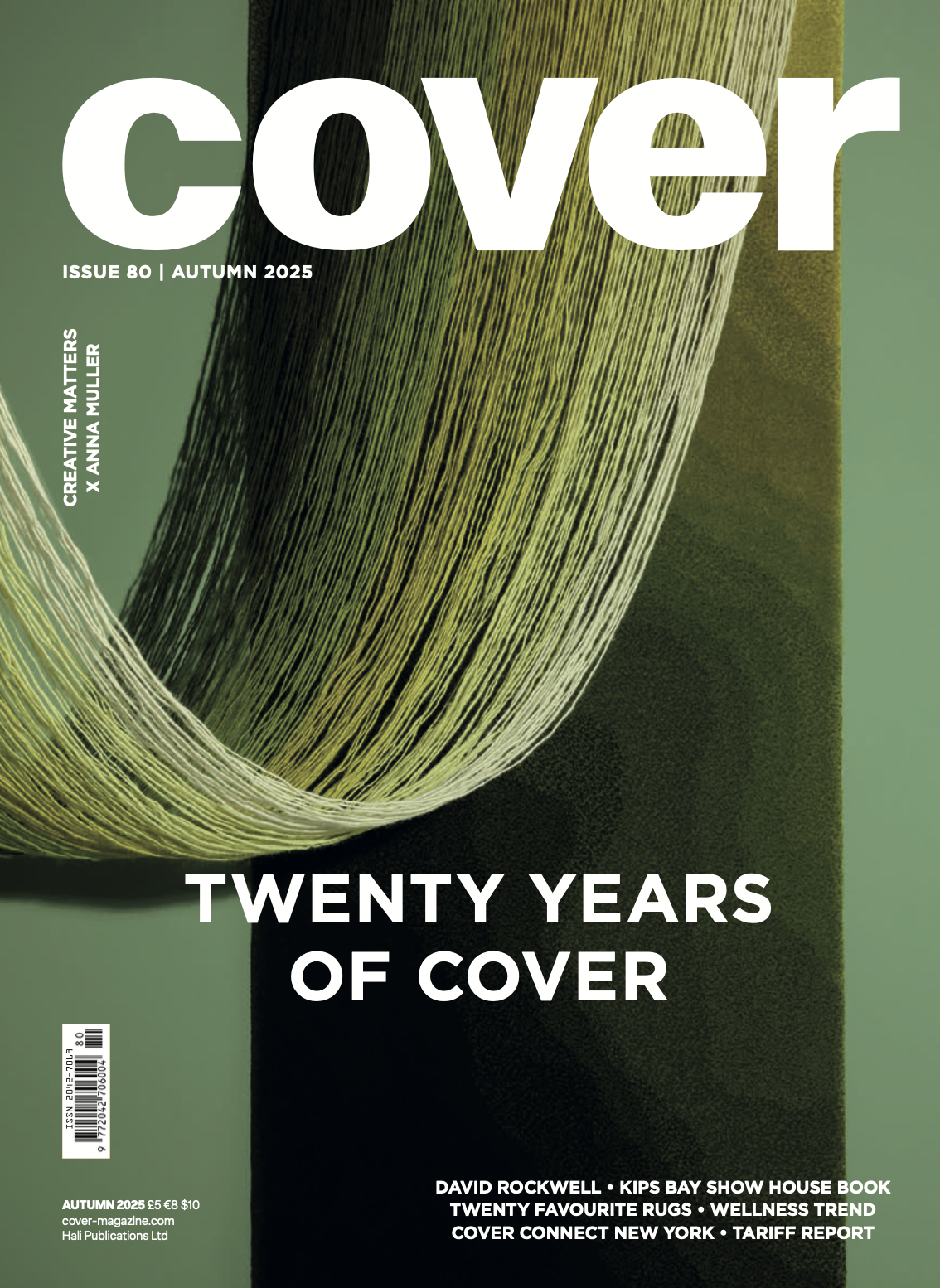 AUTOMNE, 2025. En couverture, Creative Matters x Anna Muller, "Trends : Mirage" avec Obscura Goldenrod, pp 121, "Tendances : Rusty Hues" avec Vestige Solara, pp. 123, "2025 Highlights" avec la collection Loominary de Creative Matters et le tapis Lucent Cedar, pp. 129, "A Lens on Creativity", pp. 186-187.